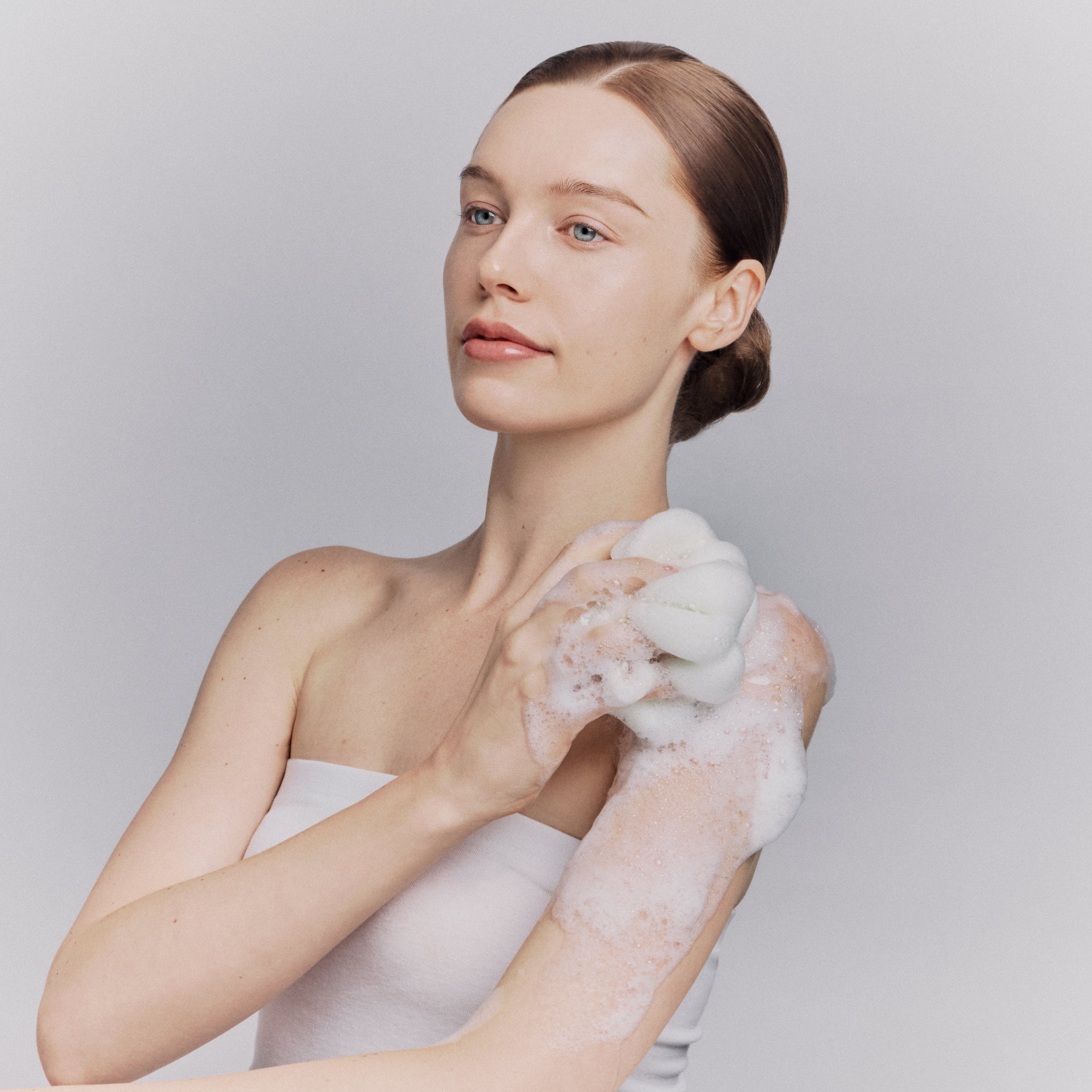 Dispense a moderate amount onto a shower pouf or into your palm, and work into a rich lather. Gently massage over your entire body, then rinse thoroughly.